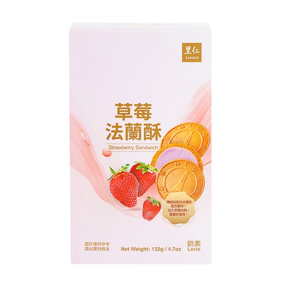 商品成份:麵粉、砂糖、棕櫚油[棕櫚油、抗氧化劑-維生素E(混合濃縮生育醇、芥花油)]、奶粉、乳清粉、無鹽奶油、草莓粉、碳酸氫鈉(小蘇打)、食鹽、檸檬酸、DL-蘋果酸。